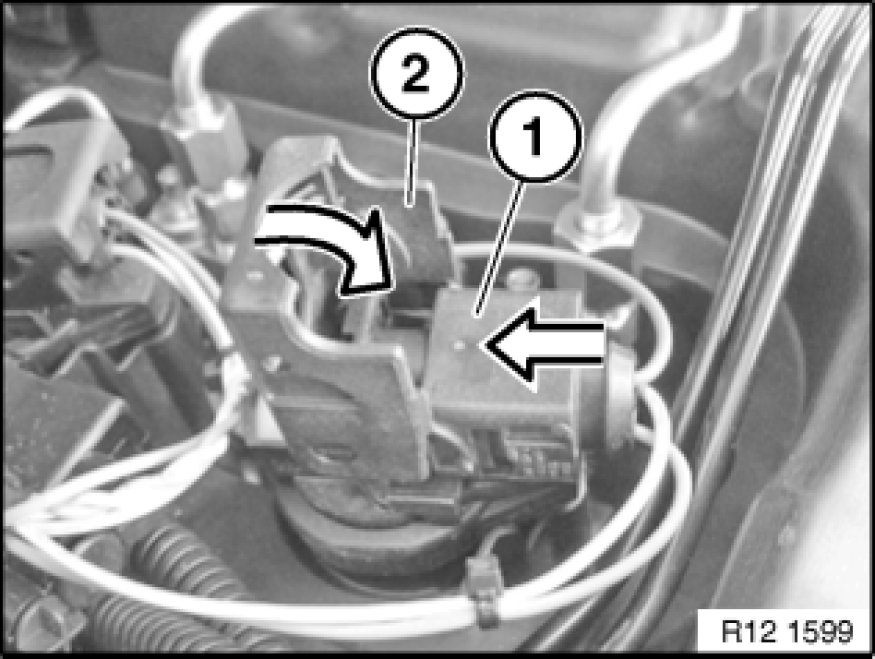 Push plug (1) with plug fastener (2) open onto ignition coil.