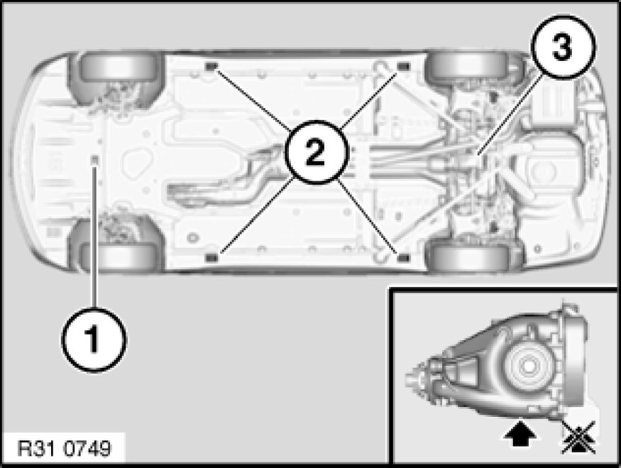 1. Use only BMW-distributed/approved trolley jacks which have rubber plate contact points.