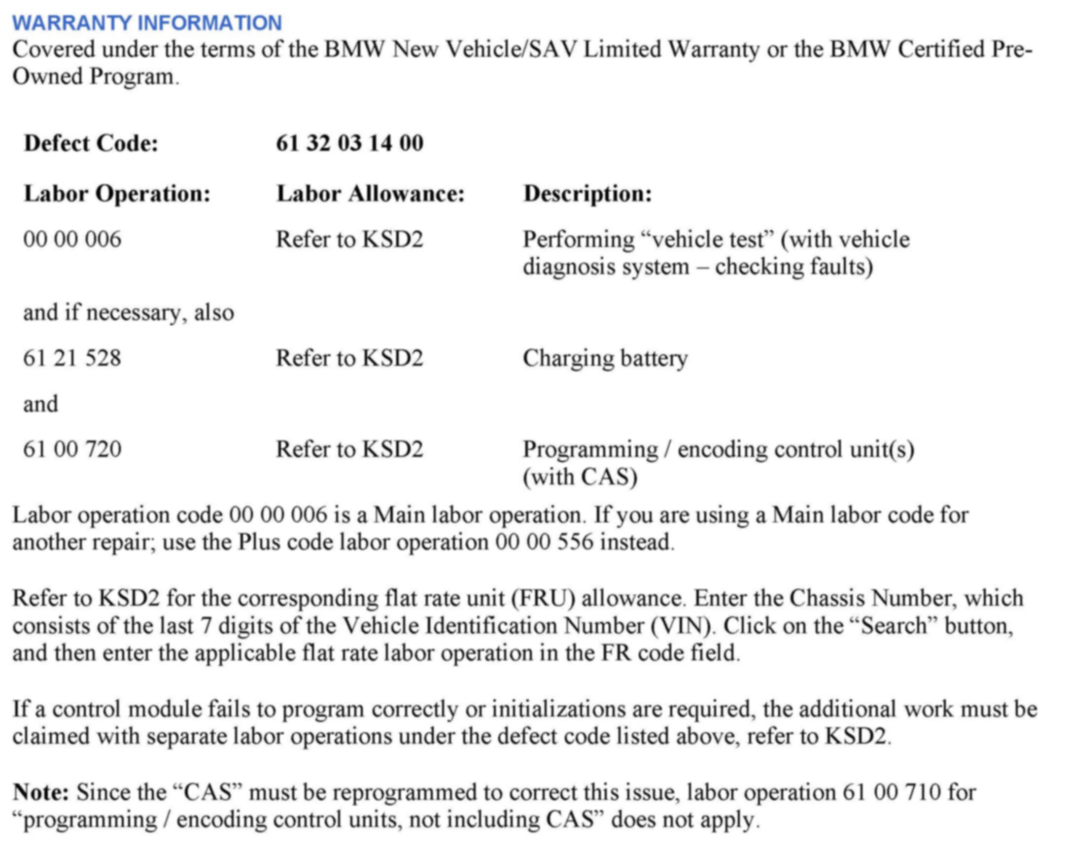 Car Access System (CAS) software error