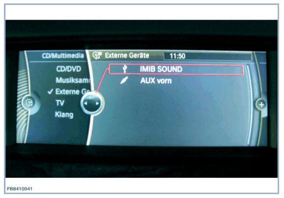 If connection to the vehicle was successful, the following graphic is displayed during the media test. The IMIB is displayed on the display of the vehicle as a connected device under the name IMIB SOUND.