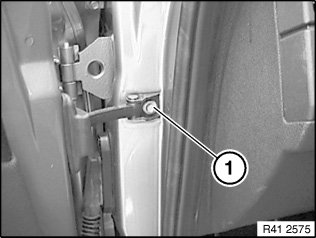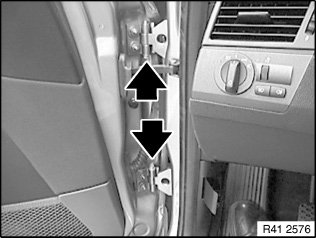 Pull plug connection from door pillar, unlock by pulling out bar and detach.