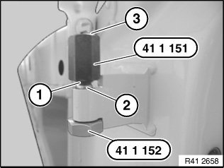 Insert screw 41 1 152 with new hinge bushing (2) into hinge.