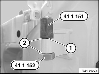 Turn bushing 41 1 151 until gap dimensions (2) are identical.