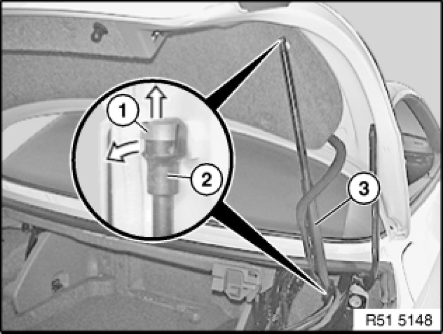 51 24 300 - Removing and installing or replacing left or right gas strut for rear lid