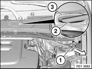 51 71 371 Removing and Installing/Replacing Tension Strut on Left or Right Spring Strut Dome