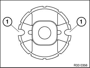 Front rubber mount must be aligned by way of slots (1) to vehicle transversal direction.