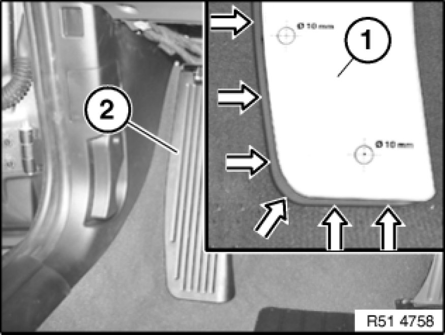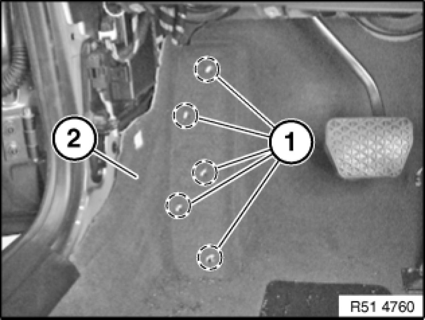 - Remove trim panel for pedal assembly 51 45 185 Removing and Installing/Replacing Panel For Pedals