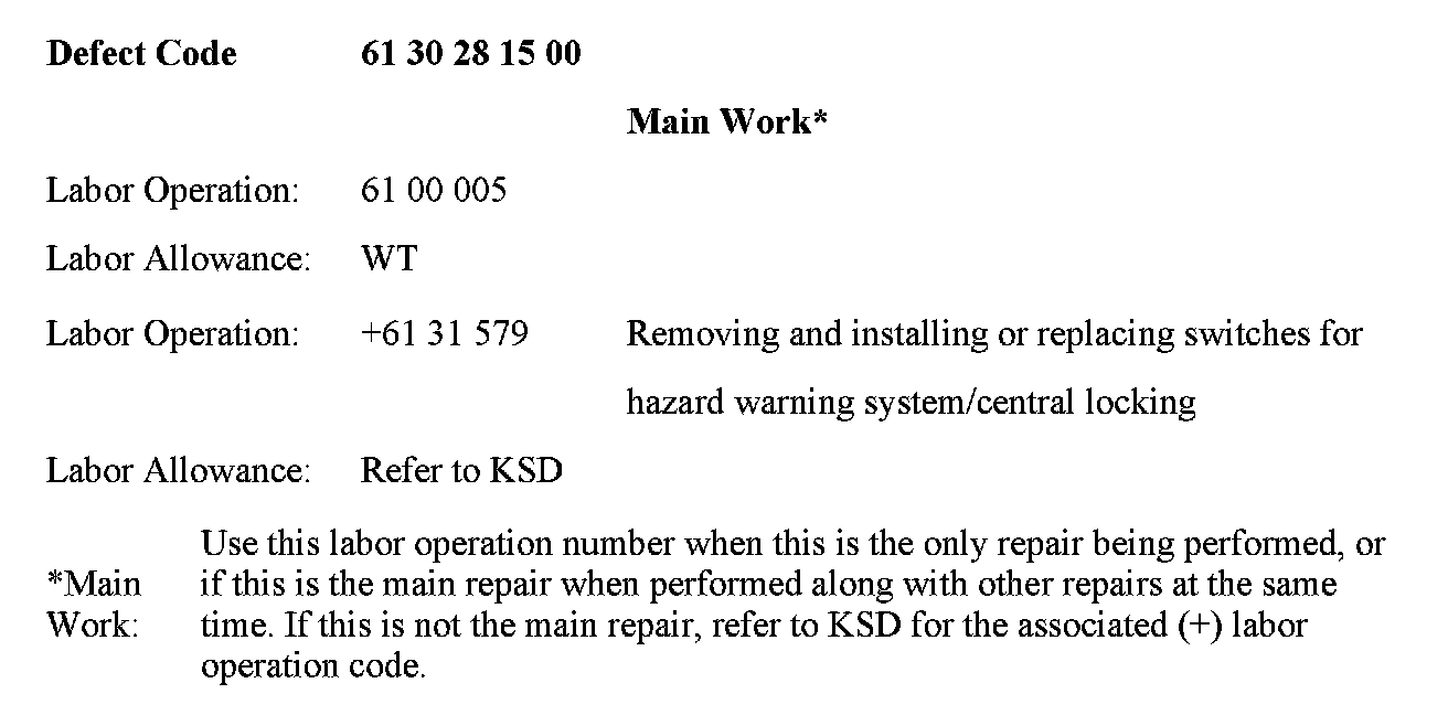 In the case of a customer complaint, test the functionality of the center lock button and replace as necessary.