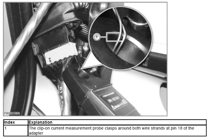 Synchronising the 100A clip-on current measurement probe. During the adjustment, the clip-on current measurement probe must not clasp around any strands of wire. The adjustment must be carried out for each individual door lock.