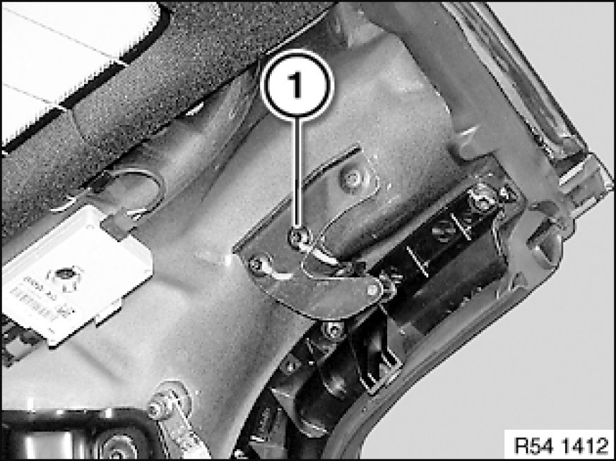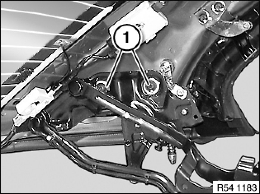 Open convertible top until screw (1) is accessible.