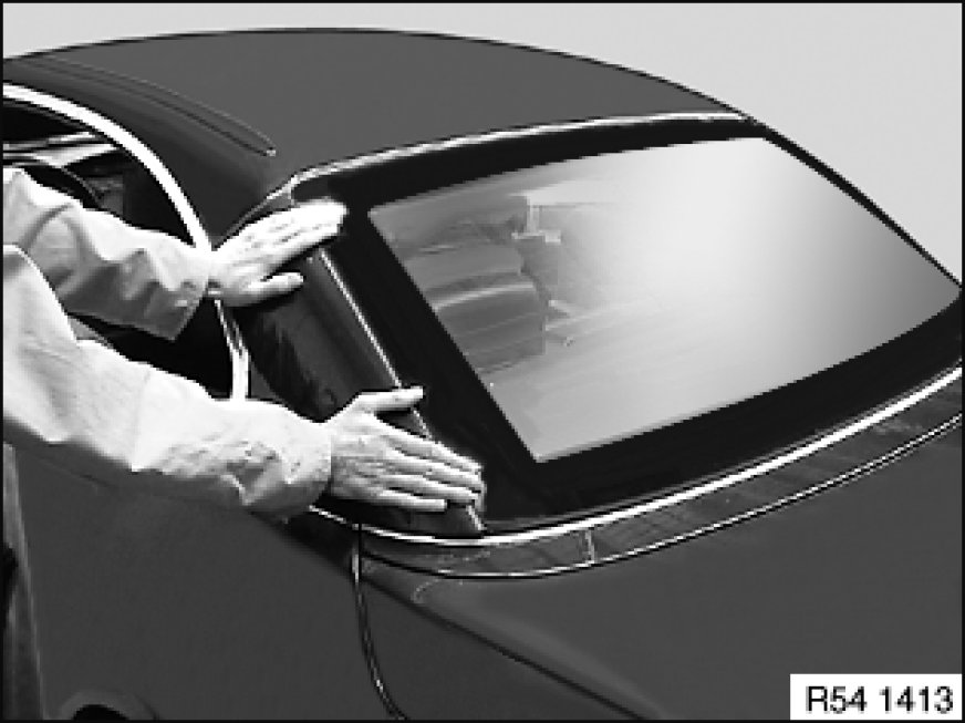 Carefully press roof shell at convertible top compartment lid.