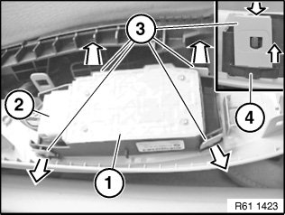 Unlock retaining tabs (3) in direction of arrow and remove switch combination (1) from cover.
