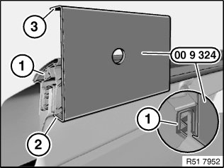 Slide screwdriver (2) into special tool 00 9 324 and weather strip (3) upwards no more than 5 mm.