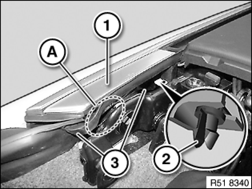 If one or several clips (2) detach from the vehicle body, they must be replaced.