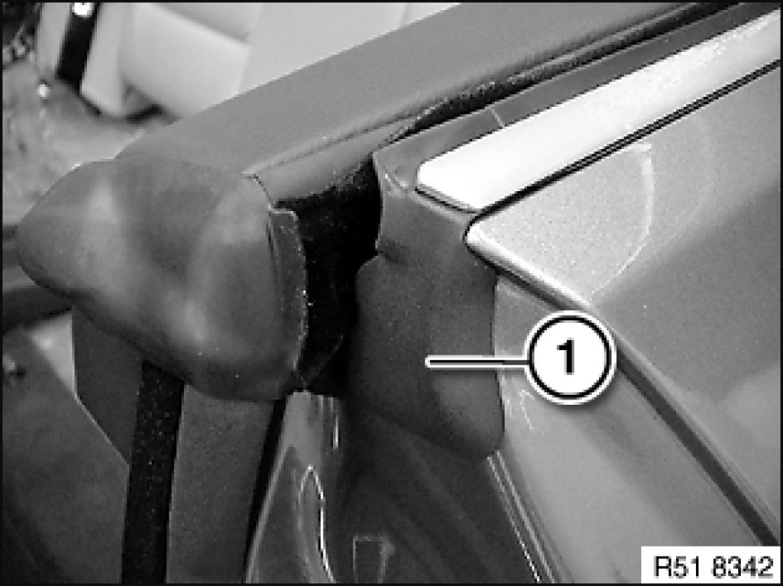 Attach adhesive tape under window cavity cover strip (1) (damage to paintwork).