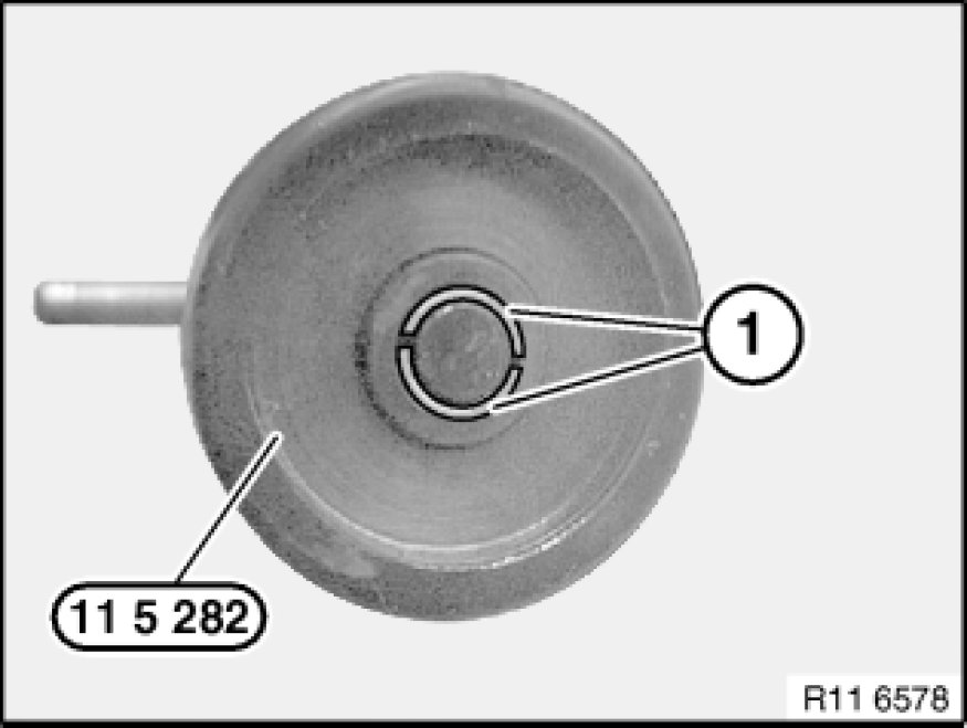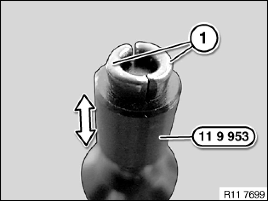 Press valve key (1) in direction of arrow into special tool 11 9 953 11 9 950 Fixture.