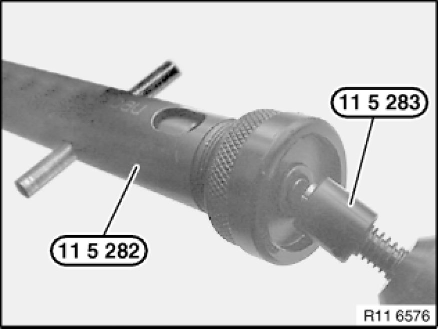 Prepare special tool 11 9 006 with special tool 11 9 008.