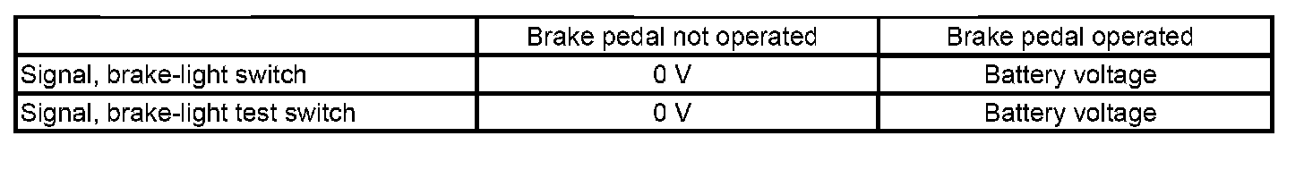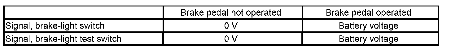 The two signals of the brake-light switch behave with respect to each other in accordance with the following table: