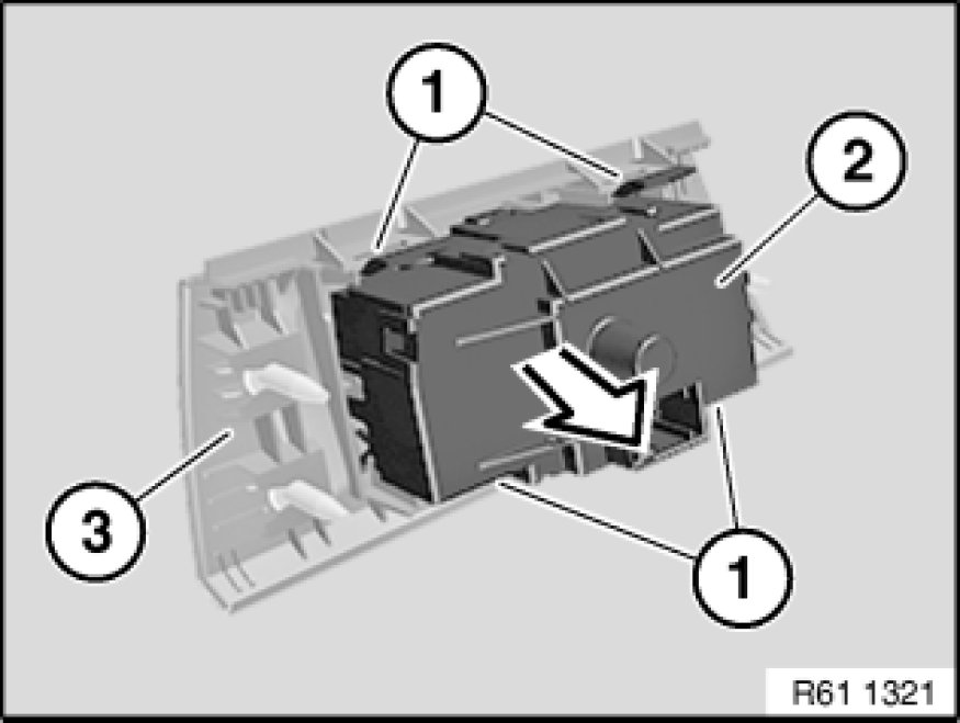 Unlock catches (1) and unclip light control unit (2) from trim (3).