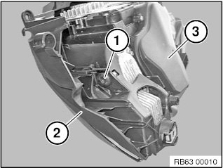 Release screw (1) and remove holder (2) from headlight (3).