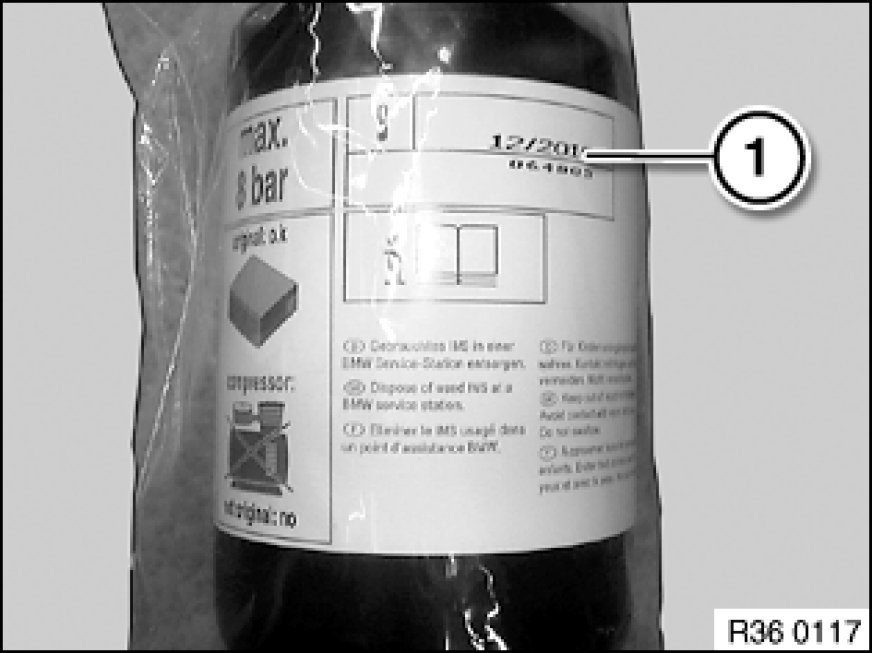 Check expiry date (1) on sealant bottle, replace if necessary.