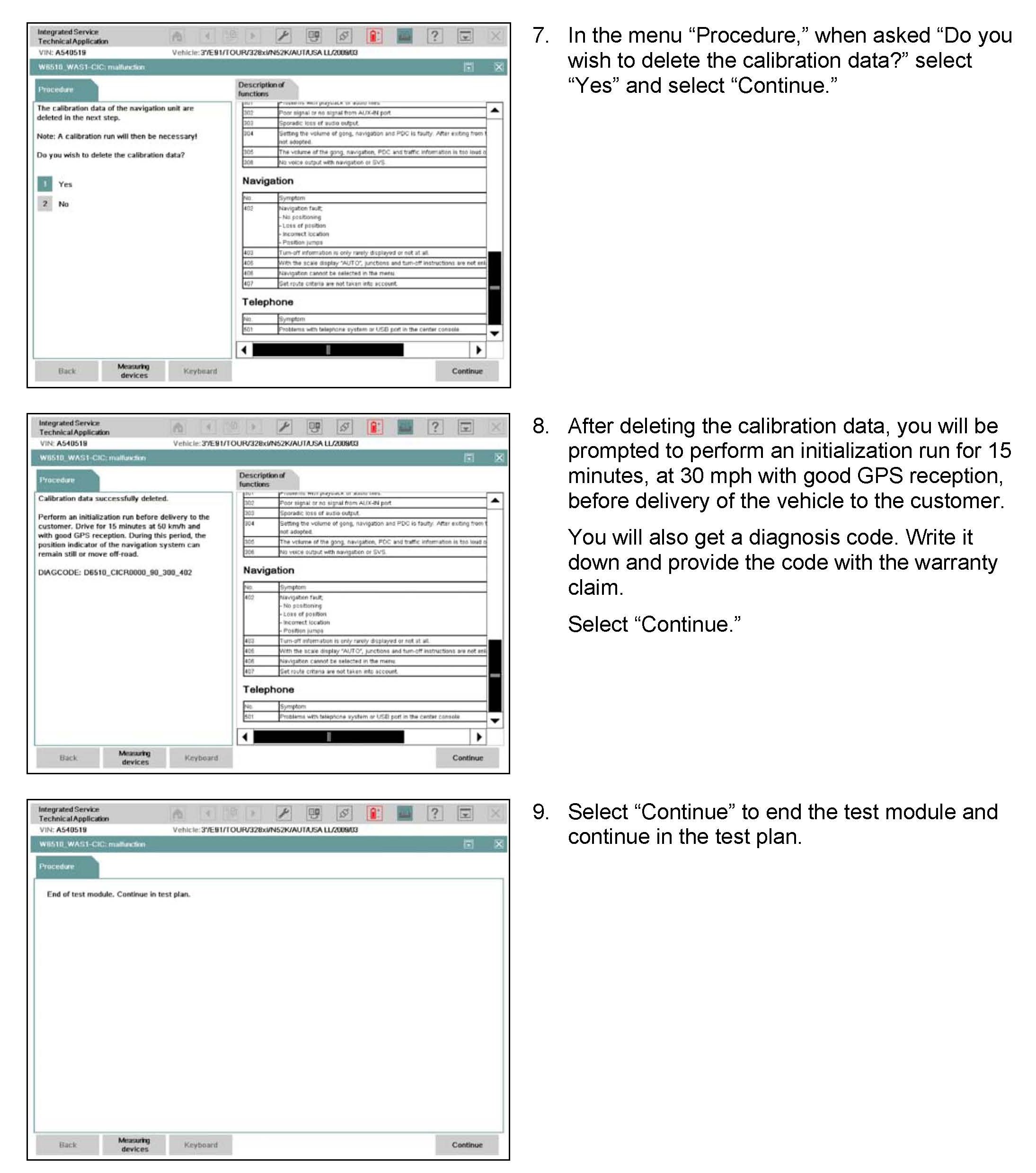Before delivery of the vehicle to the customer, perform a calibration drive for 15 minutes at a speed of 30 mph.