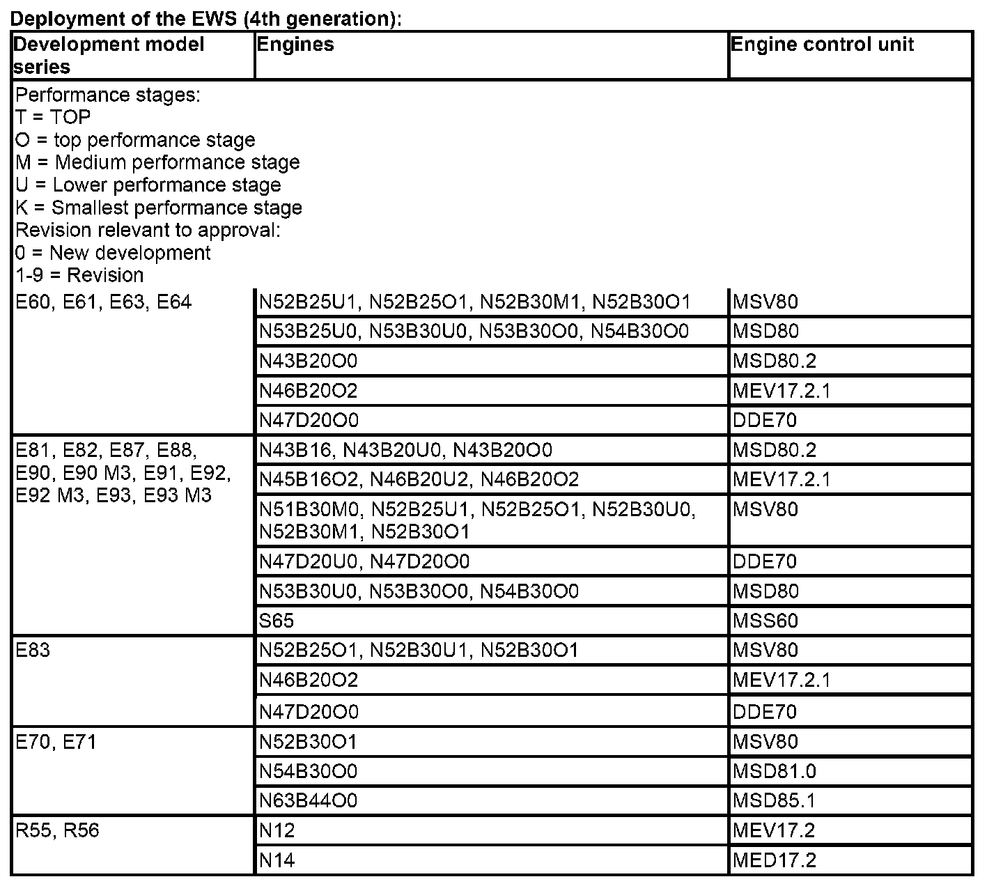 With the introduction of the new EWS (4th generation), the adjustment between the engine control unit and electronic immobiliser is no longer required.
