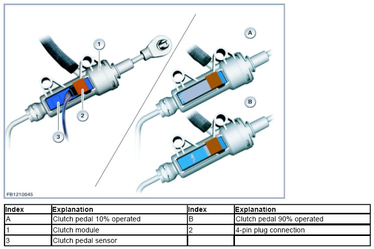 On vehicles with manual gearboxes, the clutch module at the clutch pedal picks up the clutch position: