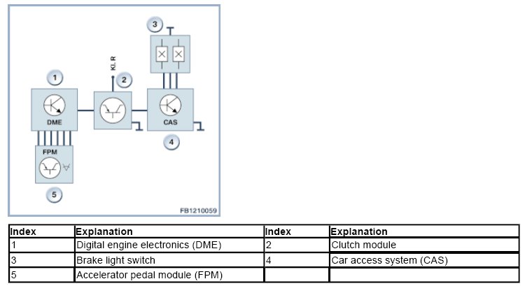 The two redundant signals from the brake light switch are forwarded for example to the Digital Engine Electronics (DME).