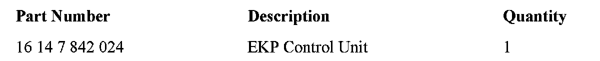 In cases where only EKP-related fault codes are stored in the DME, perform the necessary test plans for each of the faults stored. If an exact determination of the failure cannot be identified using the applicable test plans, only replace the EKP control unit for the electric fuel pump. Replacement of the EKP does not require programming of the vehicle.