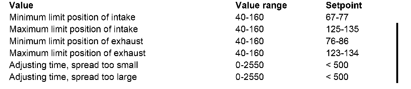 The following values are assessed in the VANOS system test: