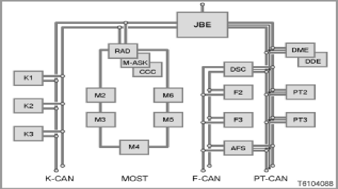 - K1... Kn: control modules on the K-CAN