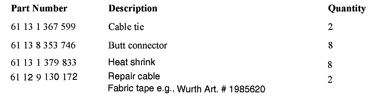 Double crimp (wire crimp and insulation crimp) each wire to the butt connector using the universal crimping die P/N 61 4 328 (refer to SI B04 32 06).