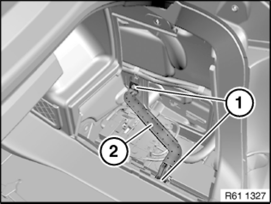 Release screws (1) and remove bracket (2). Tightening torque 61 14 1AZ Distribution Box, Current Terminals.
