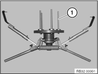 In order to avoid damaging the front side panel during the "Max. steering angle" drive-in routine, make sure the pickups are removed from the quick-clamping holders/quick-clamping units during output and input alignment. In the process do not detach the connecting cable from the pickups or the rotary plates.