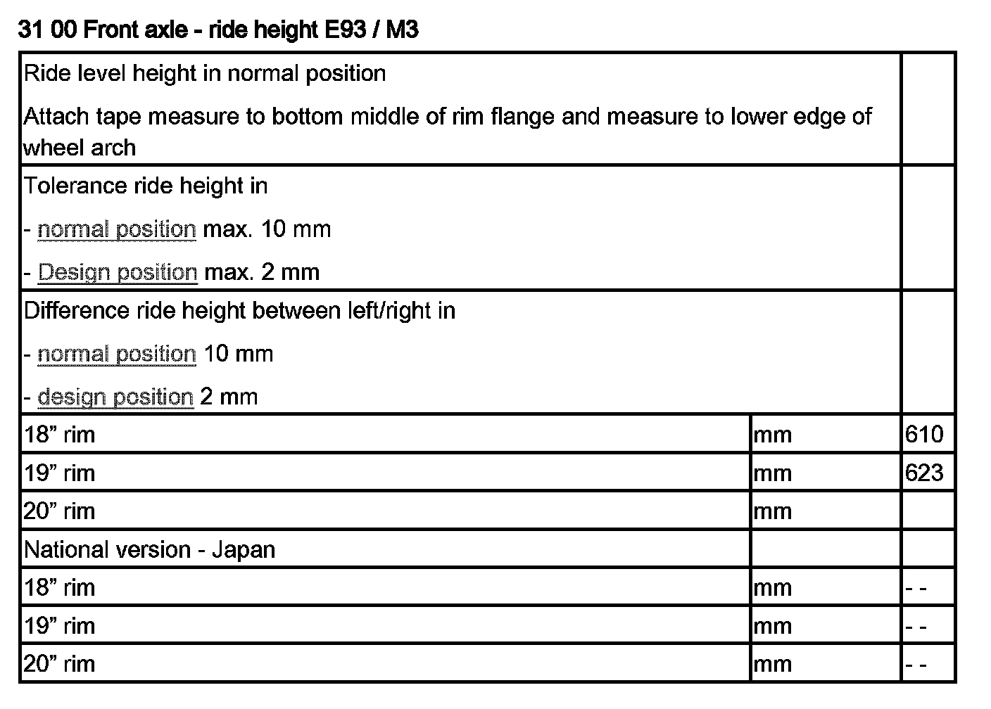 Ride Height E93 / M3