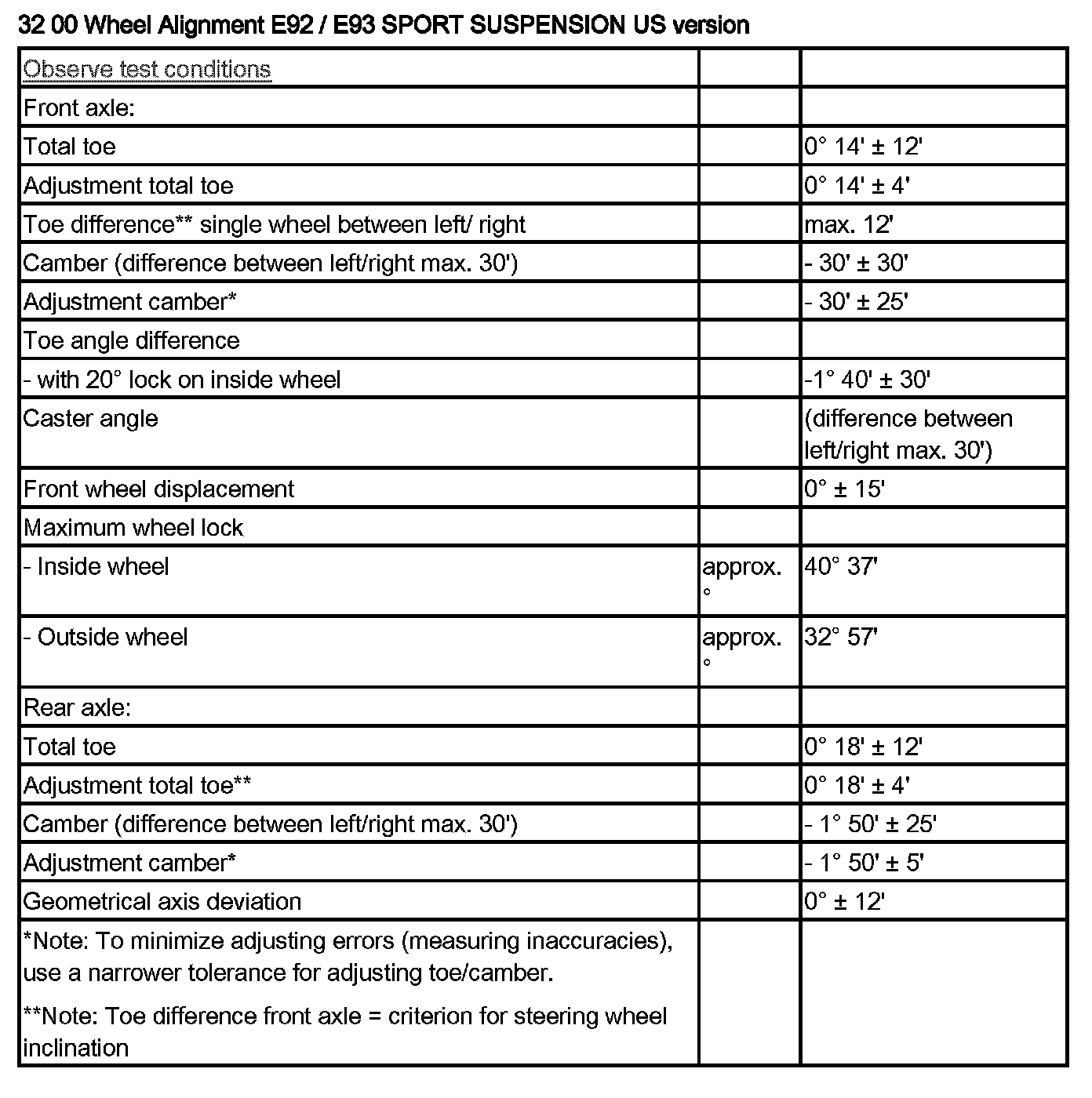 E92, E93 / Sport Suspension US version