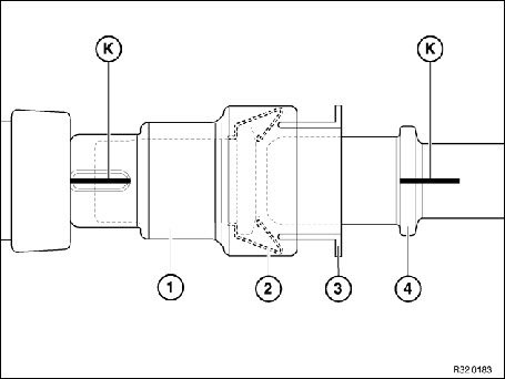 Markings (K) on coupling (1) and pipe (4) must be flush.