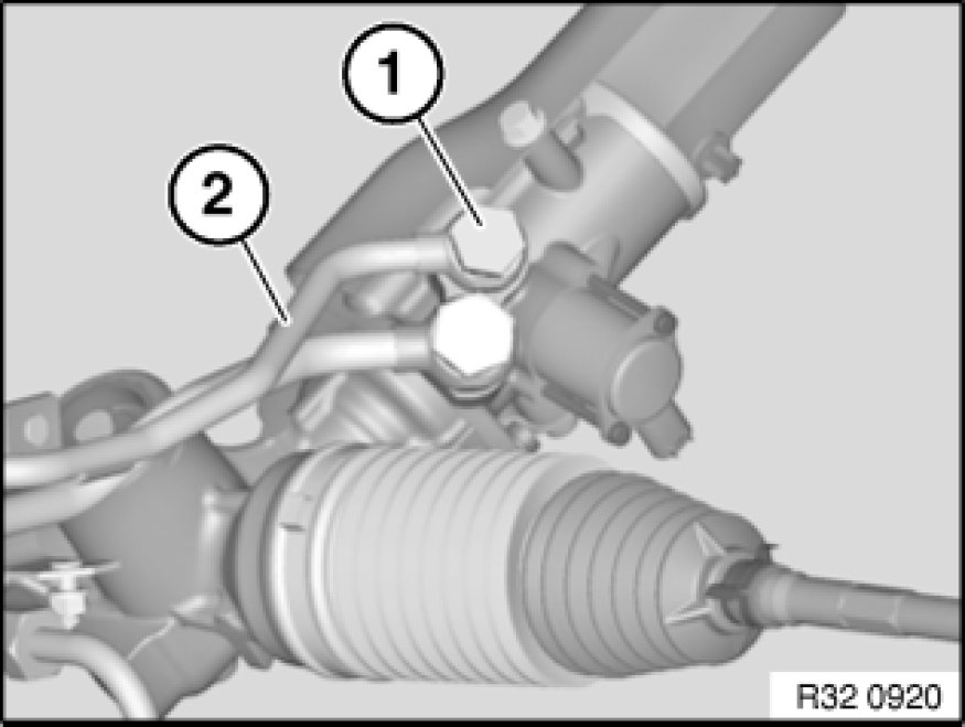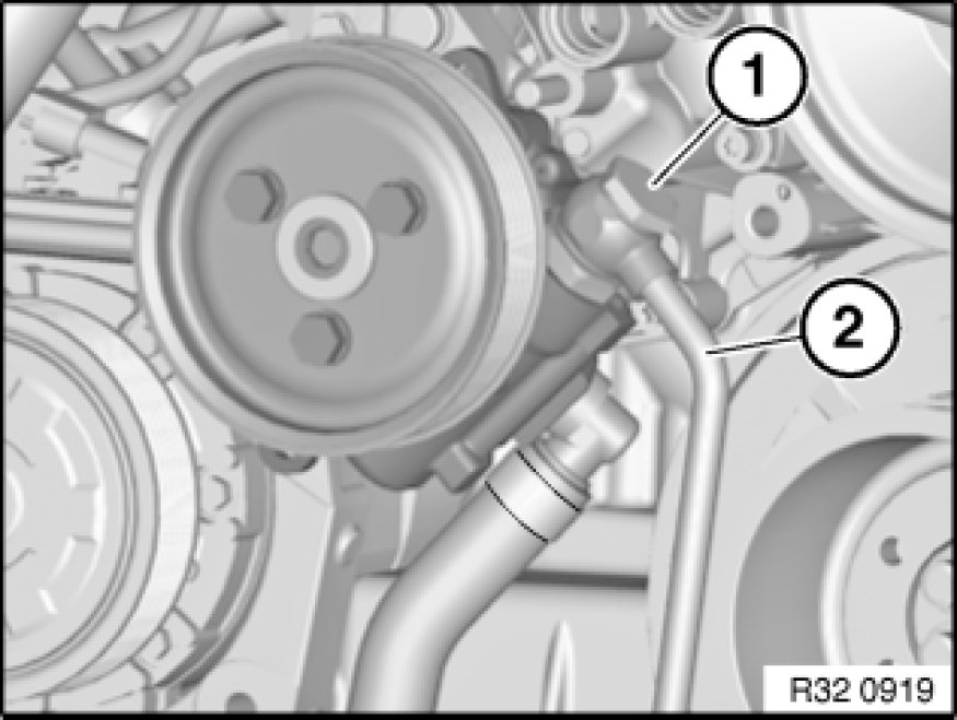 Release banjo bolt (1) and detach pressure line (2) from vane pump.