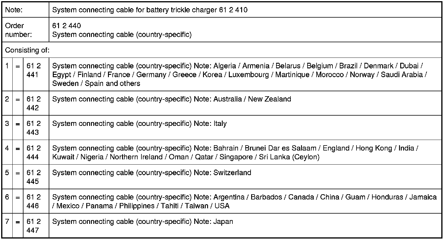 61 2 440 System Connecting Cable (Country-Specific)