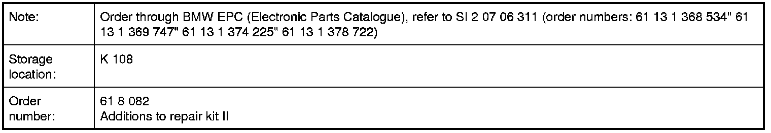 61 8 082 Additions to Repair Kit II
