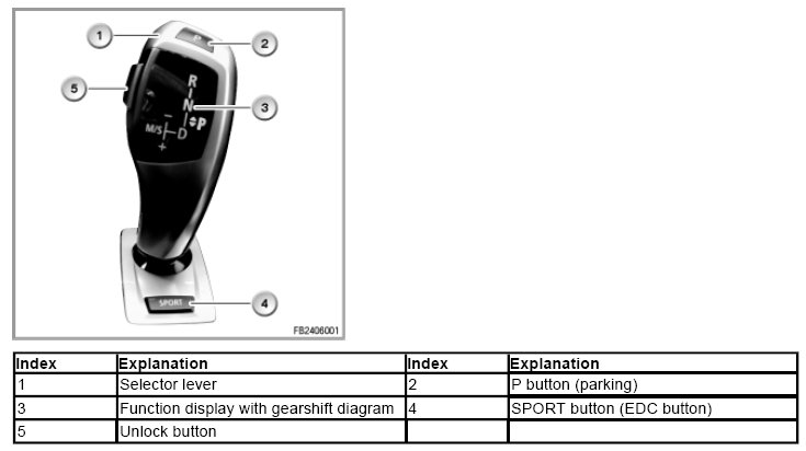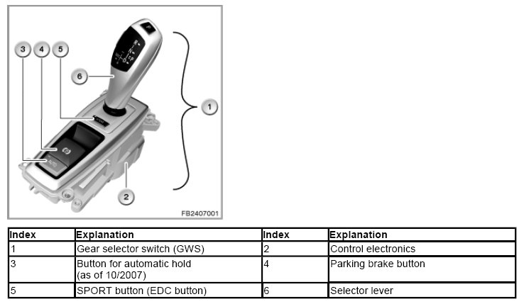 The selector-lever position is picked up by means of sensors without contact and forwarded via PT-CAN to the gearbox control (EGS).
