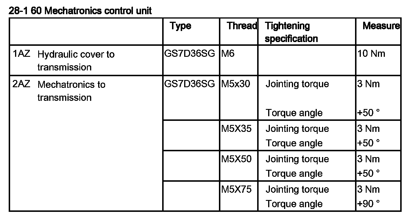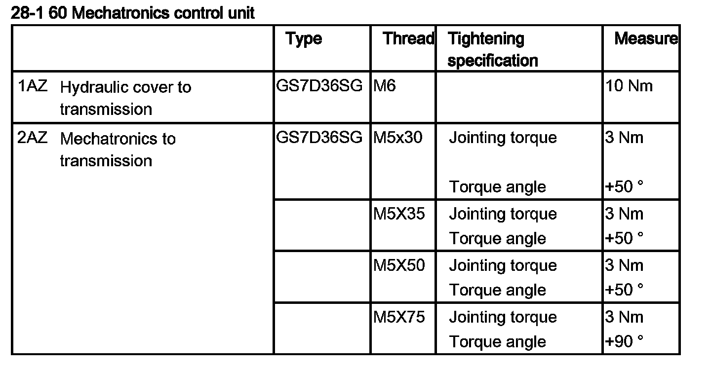 Tightening torque 28 60 1AZ.