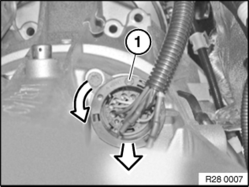 Insert special tool 24 2 390 in sealing sleeve (1).