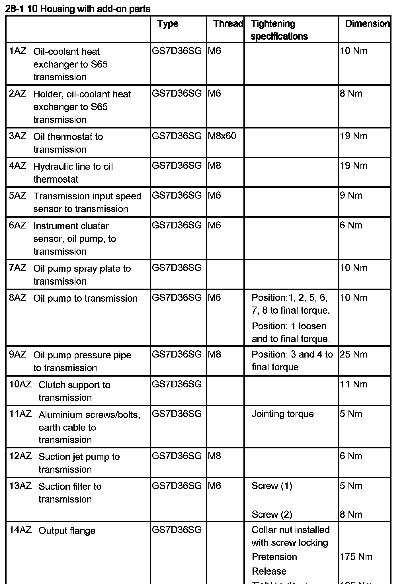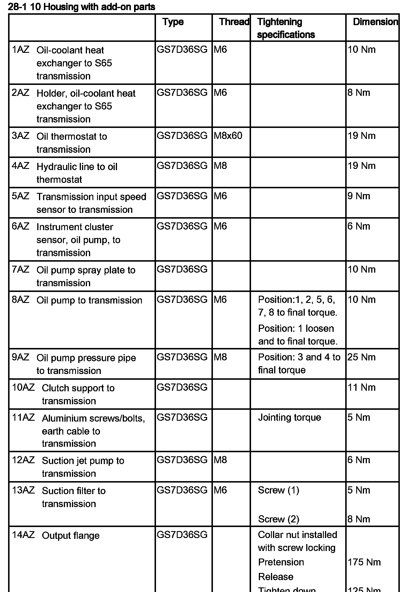 Tightening torque: 28 10 6AZ.