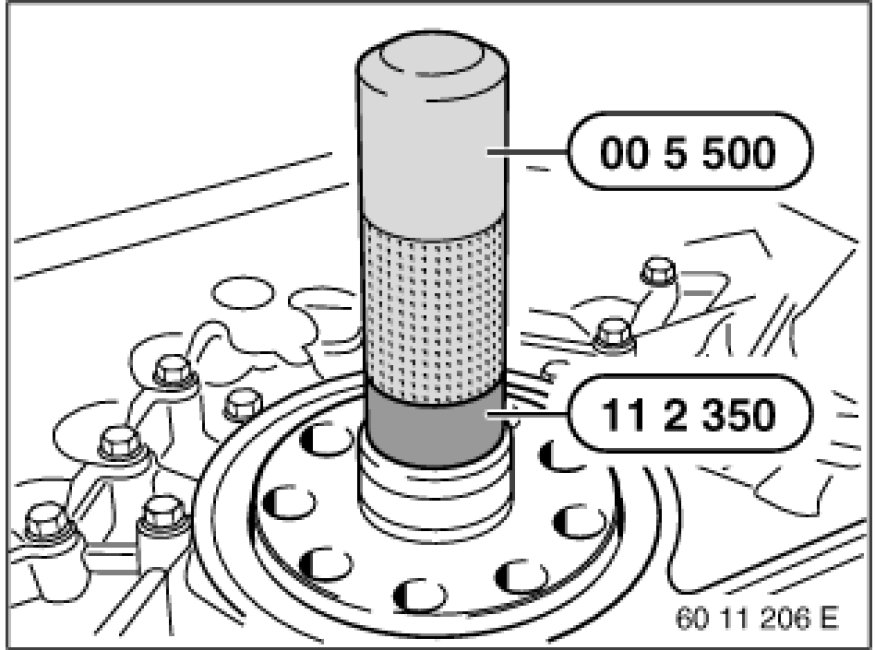 Drive in guide bearing as far as it will go with special tools 11 2 350 and 00 5 500.