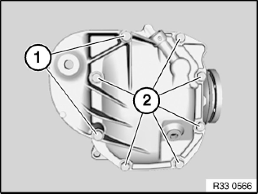 To prevent the differential oil from foaming over, make sure that no remnants of the liquid gasket are pressed into the rear differential housing.
