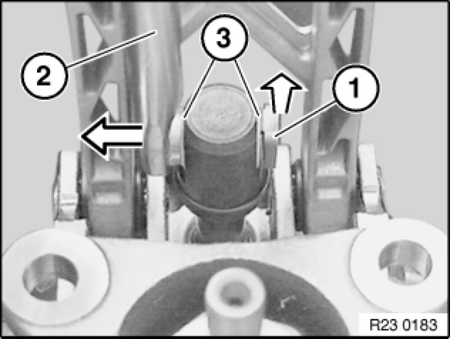 Check rubber ring (1) in shift rod joint (2) and replace if necessary.