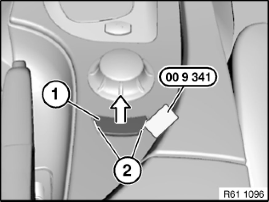 Unclip button unit (1) with special tool 00 9 341 at retaining points (2) and lever out in direction of arrow.