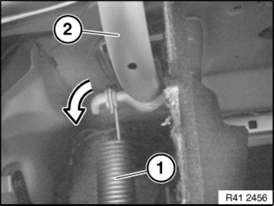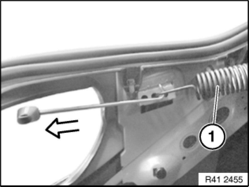 Attach special tool 51 3 290 51 3 290 Hook wrench in tension spring (1) and pull towards rear.